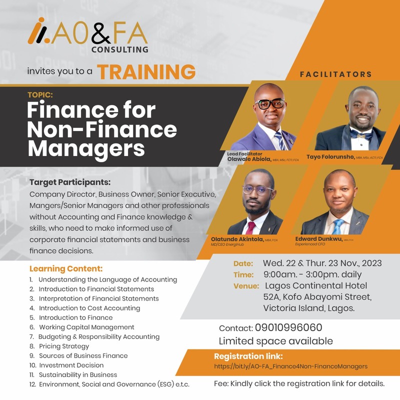 the participants. Our training contents are on topical issues on Finance, Accounting, Taxation, Management, Business